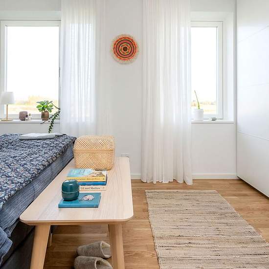 Velkommen ind i den praktiske entre, hvorfra du går ind i køkken-alrummet med plads til spisebord. Fortsæt ind i din separate stue med god plads til hjørnesofa og åbn døren ud til din egen have med træterrasse, græsplæne og bøgehæk. Du får et gæstetoilet i stueetagen og badeværelse med vaskesøjle på førstesalen, hvor du desuden får 3 rummelige værelser (det store med skabsvæg). Lyst og indbydende med store vinduer og glasdøre! I forhaven har du skur og én privat parkeringsplads. Bemærk venligst, at de viste billeder er ikke fra/af den pågæl...