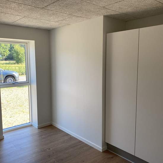 Beskrivelse Her kan I nu blive de nye lejere af dette skønne etplans rækkehus, opført i kvalitetsmaterialer og med gulvvarme i alle rum. Rummelig køkken-alrum I boligen får du et stort køkken-alrum, med plads til at familien kan samles omkring madlavningen. I køkken-alrummet er der god plads til det lange spisebord, samt en hyggelig sofakrog. Tre gode værelser Rækkehuset har tre gode værelser, og en størrelse som giver et hav af indretningsmuligheder, for både singlen, parret eller familien. Funktionelt bryggers Det funktionelle bryggers...