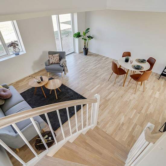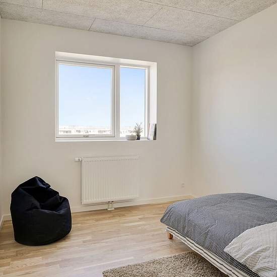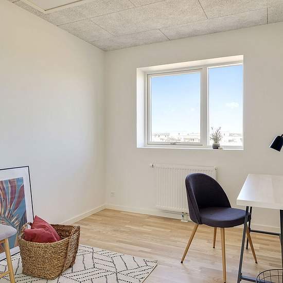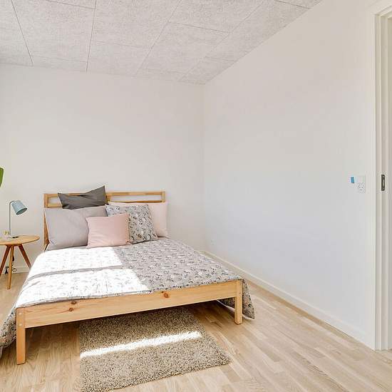 I ét-plans rækkehusene får du en entré, hvorfra der er adgang til to af boligens tre separate værelser. Du får et stort køkken-alrum i åben forbindelse med stue. Fra stuen er der adgang til boligens største værelse og badeværelset. I to-plans rækkehusene får du ligeledes en entré i stueplan samt toilet og det store køkken-alrum i åben forbindelse med stue. På førstesalen finder du tre separate værelser samt badeværelse. Der er gulvvarme i stueplan og på begge badeværelser. Alle rækkehuse har egen have samt flisebelagt terrasseområde. Hår...