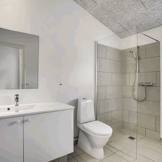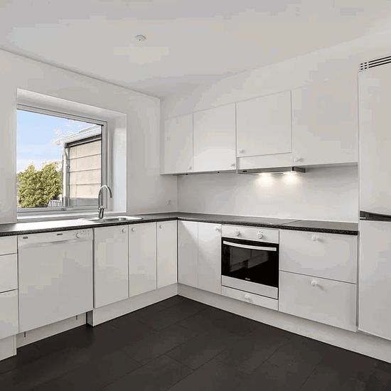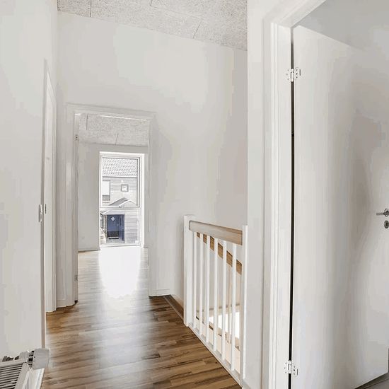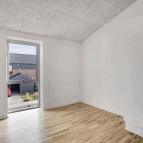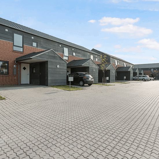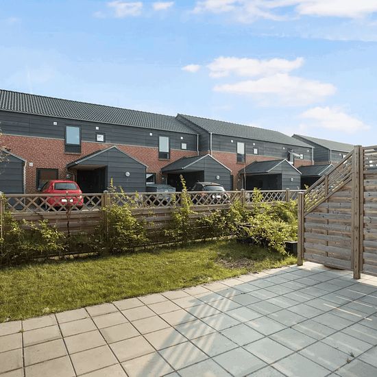 Rækkehusene er indrettet med et dejligt, køkken-alrum i åben forbindelse med stuen. Her er desuden et lille viktualierum, et bryggers i forbindelse med indgangen, og et toilet på samme etage. På anden sal finder du tre gode værelser med indbyggede skabe, samt et badeværelse. Alle boliger har egen terrasse, hvor der er plads til et lille cafesæt og en grill, og til hver bolig findes også en privat parkeringsplads. Hårde hvidevarer Alt i hårde hvidevarer samt gulvvarme på badeværelserne. Husdyr Der kan gives dispensation til husdyr efter af...