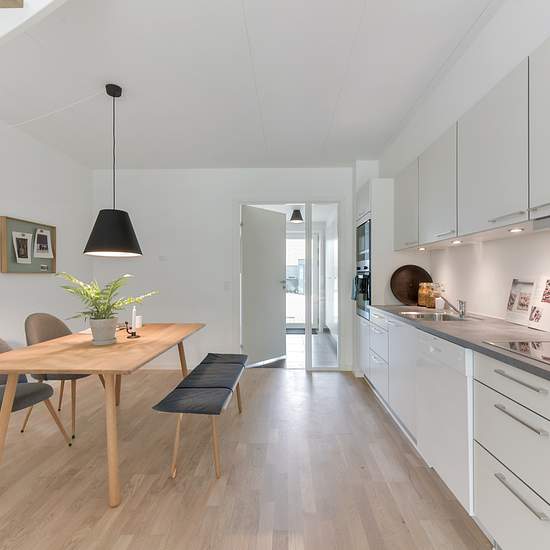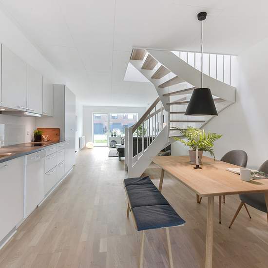Moderne og lyst rækkehus i Malling Dette rækkehus fra 2019 er beliggende i den nye del af Malling tilbyder et rummeligt og lyst fireværelses rækkehus, hvori der er lagt vægt på moderne og vedligeholdelsesvenlige materialer. Rækkehuset byder på tre rummelige værelser, med indbyggede skabe på første sal, samt et stort køkkenalrum i stueetagen som indeholder køle-fryseskab, keramisk kogezone, indbygningsovn, emhætte og opvaskemaskine. Herudover har rækkehuset to badeværelser, hvoraf det ene har tørretumbler og vaskemaskine. Sidst er der også e...