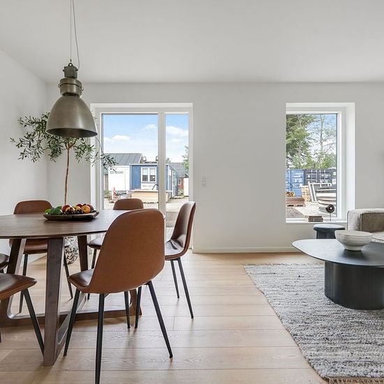 Byhuse med suveræn beliggenhed Avlsgårdsvænget har den store fordel, at beliggenheden både er bynær og omgivet af smuk natur. Der er kun tre kilometer til hjertet af Nyborg med et væld af indkøbsmuligheder, spisesteder og kulturelle oplevelser. For naturelskeren har det samtidig sine åbenlyse fordele at bo omgivet af både strand og skov. Få hunderede meter fra hoveddøren venter den smukke kystlinje og udsigten over Storebælt. Boliger i ét med naturen Alle boliger er moderne indrettet med lyse og lette materialer i en skandinavisk linje, hvo...