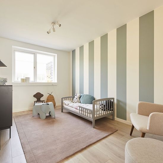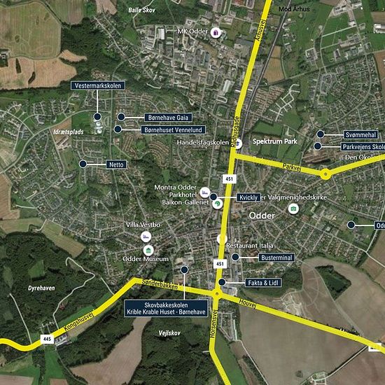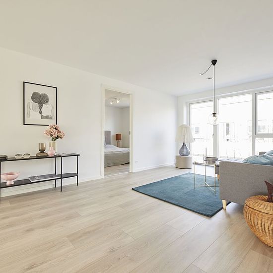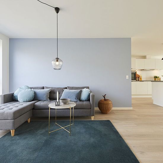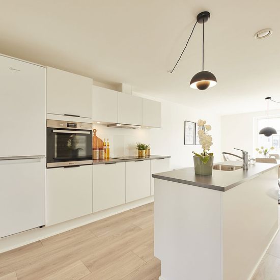 Fra husets entre er der videre adgang til det store køkkenalrum og stue i ét. Her er masser af naturligt lysindfald i form af store vinduespartier fra gulv til loft samt udgang til husets to terrasser på hver sin side af boligen. Det moderne køkken er placeret midt i rummet, således man kan være sammen med resten af familien, mens man står i køkkenet. Her er masser af muligheder for indretning af hyggelig stue samt spisekrog. Fra alrummet er videre adgang til to værelser, stort soveværelse med skabsvæg samt bryggers og badeværelse. Have: Eg...