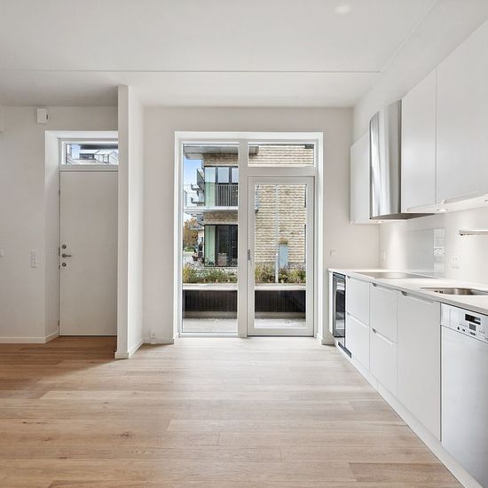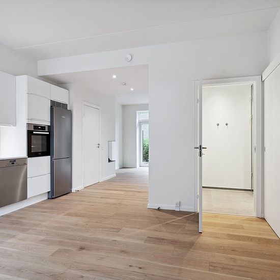 Velkommen til dette 4 værelses rækkehus hvor lys og kvalitet møder et attraktivt område. En indflytningsklar bolig med en behagelig atmosfære. Rækkehuset, der strækker sig over to plan, byder på en rummelig og indbydende stue, der åbner sig op til et lækkert køkken-alrum. Køkkenet, fra Designa, er indrettet med mat hvide fronter og en elegant corian bordplade. Her finder du moderne hvidevarer fra Miele, herunder et køle-/fryseskab, opvaskemaskine og induktionskogezone. Stuen er udstyret med en smuk gaspejs fra Living Flames, der skaber en h...