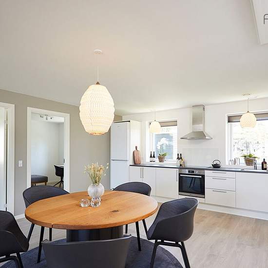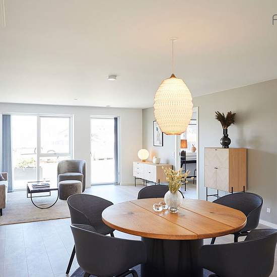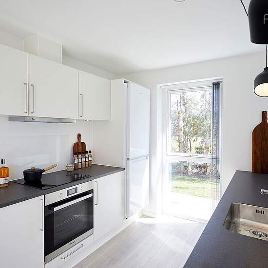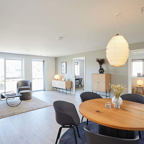 Skønt indrettet og moderne dobbelthus med lyst køkkenalrum og i åben forbindelse til vinkelstue med store vinduer fra gulv til loft, soveværelse med tre faste skabe, to værelser, bryggers/entre samt badeværelse. Fra stuen er udgang til husets store terrasse samt egen have udlagt med græs. Her er ligeledes eget redskabsskur. Have: Egen have og terrasse Udhuse: Redskabsrum, 7 m² Parkering: Fælles parkering Al forbrug afregnes direkte til forsyningsselskaberne Åben og lys bolig Husene i Stige er indrettet med stort åbent køkken/alrum med fast...