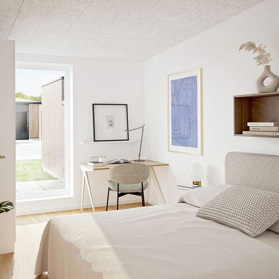 Drømmer du om et nyt hjem hvor der er plads til hele familien? Og hvor alt det I skal bruge i hverdagen, er i gåafstand fra døren? Så er det i Skovlunden, Stenlille hvor I sammen kan skabe rammerne for jeres nye hjem . En praktisk velkomst Boligens entre er både flot og praktisk. Gulvet er med gråt gulv i fliselook, så du ikke behøver at bekymre dig om beskidte støvler og tasker der bliver smidt på gulvet. I entreen har du både vaskemaskine, tørretumbler og mulighed for at lave gode opbevaringsløsninger til hele familiens sko og overtøj. ...