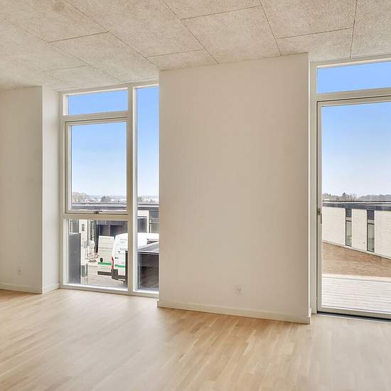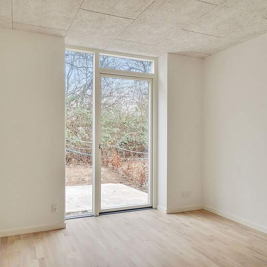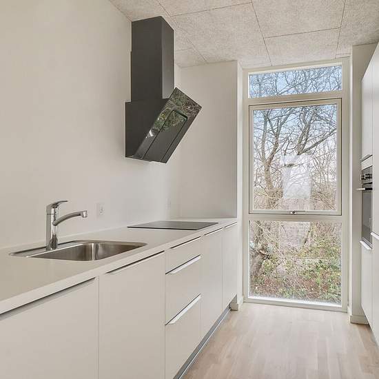 Fra hoveddøren træder du ind i entréen i rækkehusene i ét-plan. Du får et stort køkken-alrum i åben forbindelse til stuen. Fra køkken-alrummet er der adgang til et stort badeværelse med vaskesøjle og to til tre separate værelser med indbyggede skabe. De fleste rækkehuse i ét plan har et bryggers, de resterende boliger har vaskefaciliteter i entréen. I rækkehusene i to plan møder du først boligens entré. Her har du også adgang til husets ene toilet, hvor vaskesøjlen er placeret. På førstesalen finder du boligens to separate værelser, med ind...