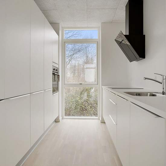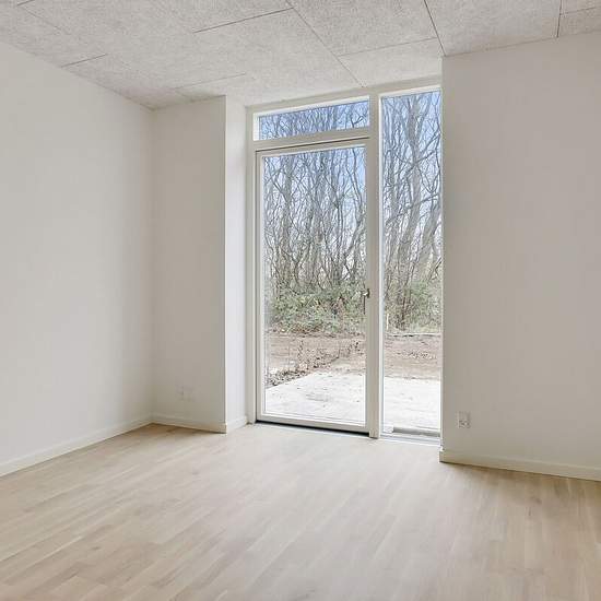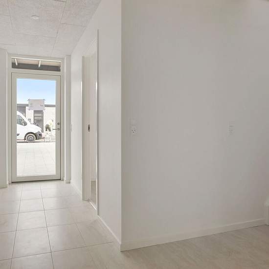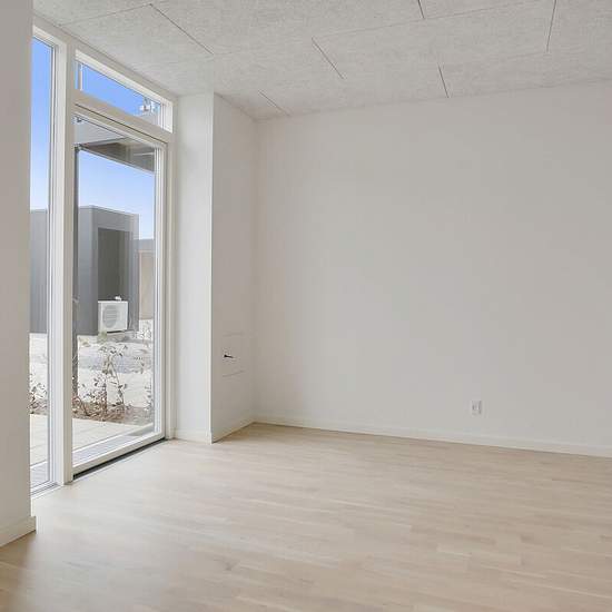 Fra hoveddøren træder du ind i entréen i rækkehusene i ét-plan. Du får et stort køkken-alrum i åben forbindelse til stuen. Fra køkken-alrummet er der adgang til et stort badeværelse med vaskesøjle og to til tre separate værelser med indbyggede skabe. De fleste rækkehuse i ét plan har et bryggers, de resterende boliger har vaskefaciliteter i entréen. I rækkehusene i to plan møder du først boligens entré. Her har du også adgang til husets ene toilet, hvor vaskesøjlen er placeret. På førstesalen finder du boligens to separate værelser, med ind...