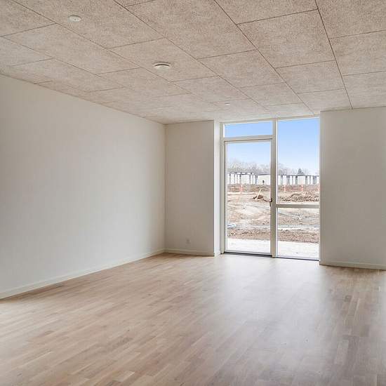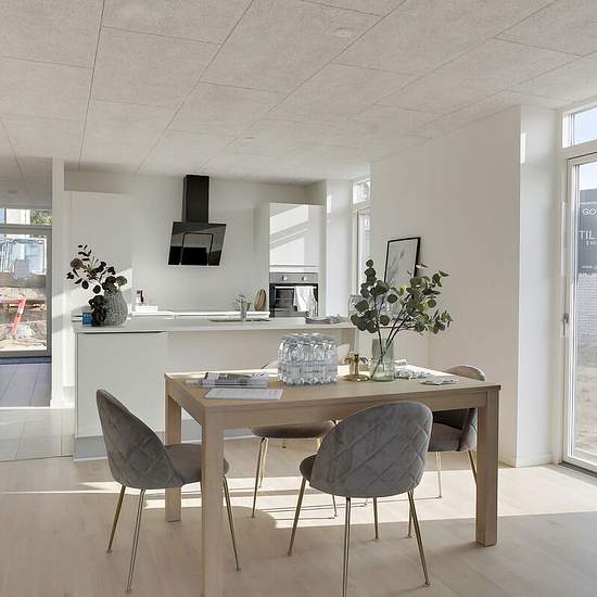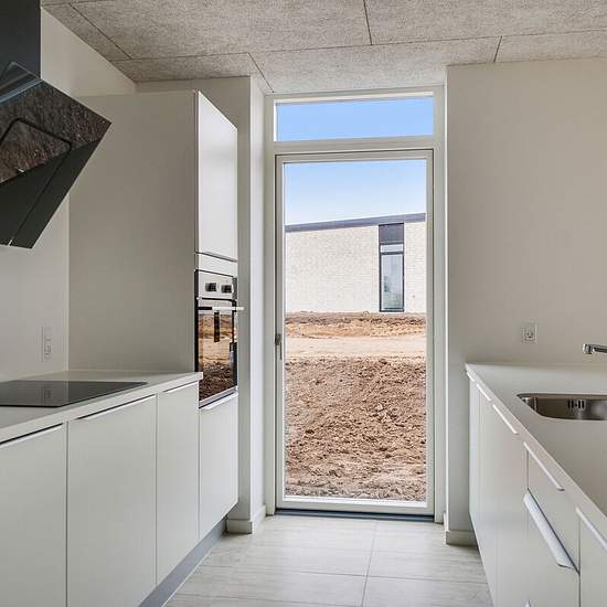 Fra hoveddøren træder du ind i entréen i rækkehusene i ét-plan. Du får et stort køkken-alrum i åben forbindelse til stuen. Fra køkken-alrummet er der adgang til et stort badeværelse med vaskesøjle og to til tre separate værelser med indbyggede skabe. De fleste rækkehuse i ét plan har et bryggers, de resterende boliger har vaskefaciliteter i entréen. I rækkehusene i to plan møder du først boligens entré. Her har du også adgang til husets ene toilet, hvor vaskesøjlen er placeret. På førstesalen finder du boligens to separate værelser, med ind...