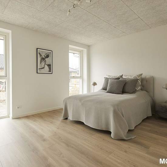 Rummelighed, kvalitet og familiehygge Denne skønne bolig på 105 m² byder på masser af plads og en gennemtænkt indretning, der passer perfekt til den moderne børnefamilie. Her får du et hjem, hvor funktionalitet og atmosfære går hånd i hånd – og hvor lyset strømmer ind fra begge sider. Boligen Husets hjerte er det store køkken/alrum og stue på næsten 40 m². De store vinduespartier og udgangen til begge terrasser skaber et lyst og luftigt opholdsrum med plads til både hverdag og gæster. De tre værelser er placeret i hver sin ende af huset, ...