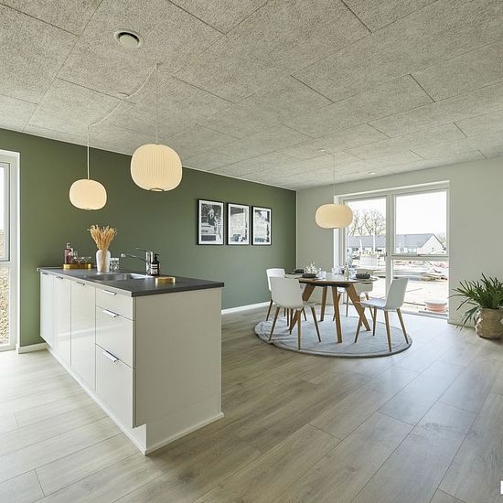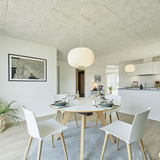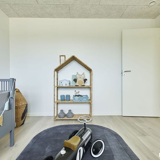 Rummelighed, kvalitet og familiehygge Denne skønne bolig på 105 m² byder på masser af plads og en gennemtænkt indretning, der passer perfekt til den moderne børnefamilie. Her får du et hjem, hvor funktionalitet og atmosfære går hånd i hånd – og hvor lyset strømmer ind fra begge sider. Boligen Husets hjerte er det store køkken/alrum og stue på næsten 40 m². De store vinduespartier og udgangen til begge terrasser skaber et lyst og luftigt opholdsrum med plads til både hverdag og gæster. De tre værelser er placeret i hver sin ende af huset, ...