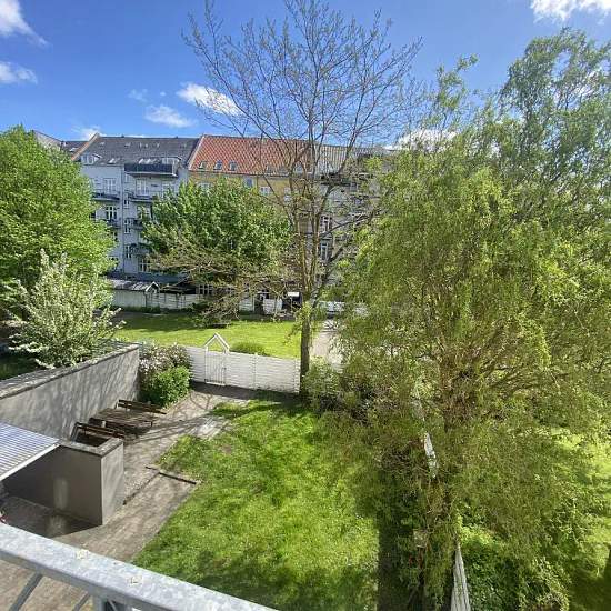 Velkommen til denne lejlighed hvor lys og moderne komfort møder charmerende byejendom. En indflytningsklar bolig med en behagelig atmosfære. Lejligheden byder på en rummelig planløsning med fire regulære rum, der giver mulighed for både indretning af stue, soveværelse og kontor. Den lyse stue med flotte plankegulve og franske døre åbner op til en fransk altan, hvorfra du kan nyde udsigten til det grønne gårdmiljø. Det separate køkken er stilrent indrettet med hvide, grebsfrie elementer og mørk bordplade, hvilket skaber en harmonisk kontrast...
