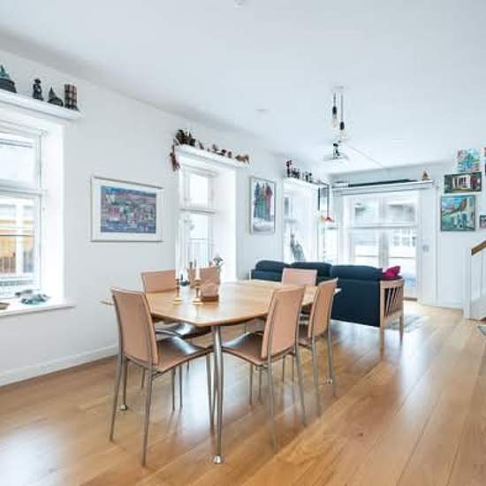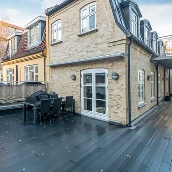 Området hvor lejligheden er beliggende, byder på mange gode og skønne faciliteter. Her er der kort afstand til byens mange caféer, gågader, indkøbsmuligheder, Salling, Aalborg havnefront samt alt hvad midtbyen har at tilbyde. Lejligheden er nyopført i 2015 og fremstår i 2 plan på 136 m2 som et gårdhus midt i Aalborg Centrum med adgang via port gennemgang og ejendommens fælles terrasse. Der er to badeværelser i lejligheden samt udgang fra stue til terrasse med egen markise. : 12.662 kr./md. : 1.200 kr./md. nueller efter aftale. Husdyr e...