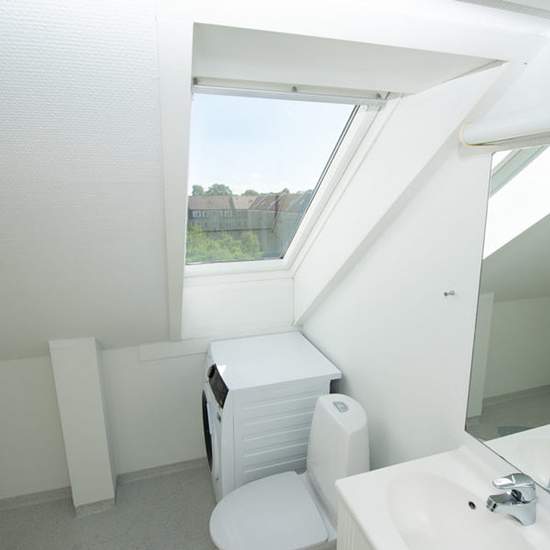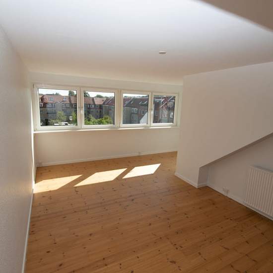 Flot taglejlighed med synligt loftbjælker Lejligheden består af 3 værelser, 1 spisekøkken, 1 badeværelse og 1 entre. Lejligheden er velegnet til delelejlighed. Entré/fordelingsgang med trægulv og adgang til alle rum. Stort spisekøkken med flotte skabselementer, opvaskemaskine, køle-/fryseskab og glaskeramisk komfur og nylagt trægulv. Der er god plads til et 6 personers spisebord ved udsigtsvindue. Flot badeværelse med afskærmet bruseniche, skabsarrangement, KOMBI vaskemaskine/tørretumbler håndklædetørre og spots i loft. Stor vestvendt ...