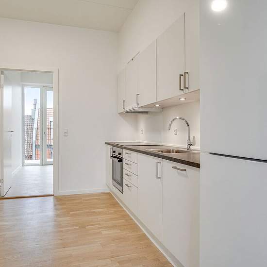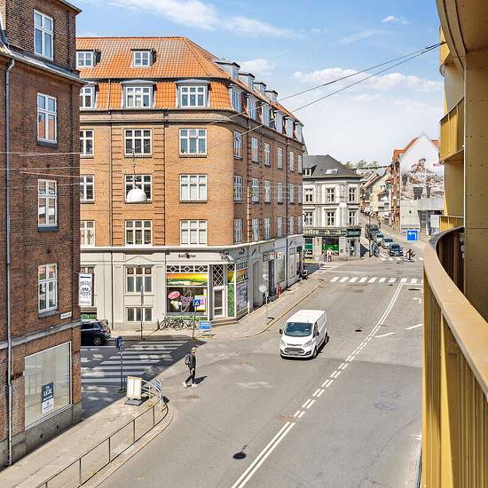 På Vester Allé i centrum af Aarhus udlejer vi 3-, 4-, 5- og 6-værelses lejligheder i den, de fleste aarhusianere ville kalde – Guldbygningen. Alle lejlighederne har enten fransk altan eller en almindelig altan. Lejlighederne på 6. sal har direkte udgang til egen tagterrasse. Boligerne varmes op af gulvvarme. Hårde hvidevarer Der er alt i hårde hvidevarer i lejlighederne herunder kombineret vaskemaskine og tørretumbler. Husdyr Lejere kan ansøge om tilladelse til at holde én indekat. Hunde er ikke tilladt. Se vores samlede husdyrsregler her...