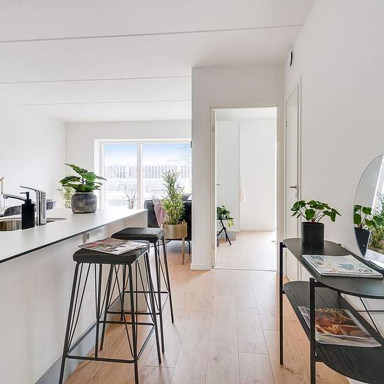 Gennemført og nybygget lejlighed med altan Stilrent, lyst og helt igennem lækkert. Så kort kan denne nybyggede lejlighed fra 2021 beskrives, hvor der kun er anvendt kvalitetsmaterialer, hvilket er let at se. Jeres kommende hjem er en del af et større byggeri med bygninger, der fremstår flotte og klassiske i røde mursten med sorte vinduesrammer og en bred svalegang samt elevator. I bliver en del af et fredeligt og lukket område, der både egner sig til børnefamilien, parret eller singlen, som gerne vil bo centralt og tæt på det meste. I kan ...