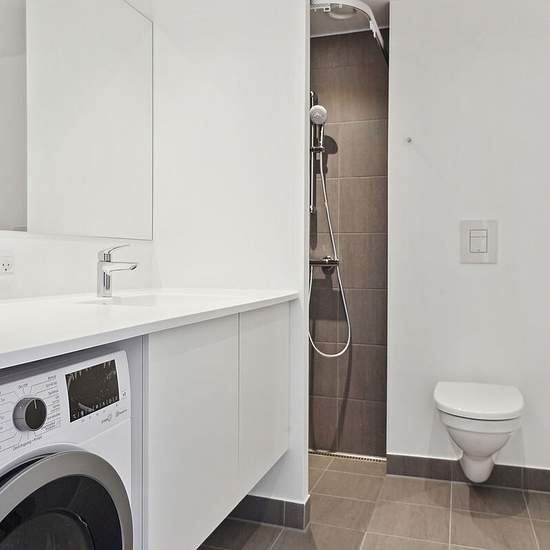 Lejlighederne kommer med forskellige planløsninger. Nogle lejligheder har en lille entré, og i andre lejligheder træder man direkte ind i køkken-alrummet. Du får et godt og funktionelt indrettet badeværelse med separat bruseniche og vaskesøjle med kombineret vaskemaskine og tørretumbler. Alt afhængig af lejlighedens størrelse er der 1 til 3 separate værelser udover køkken-alrummet. Der er depotrum tilgængeligt i næsten alle lejemål bortset fra otte boliger, hvor depotrummet er udenfor lejemålet. Alle lejlighederne i stueetagen har egen terr...