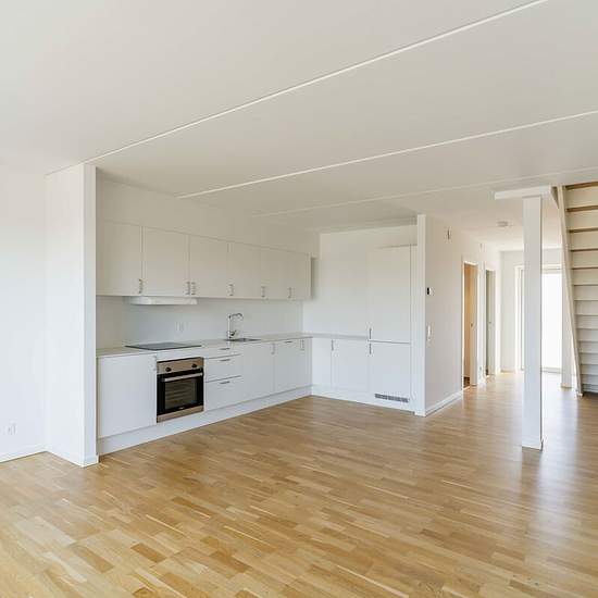 Lejeboligerne spænder fra 61–121 m², fordelt på 2-4 værelser og er moderne indrettet med fleksible planløsninger, åbne køkkenalrum og integrerede depotrum – typisk adskilt fra soveværelse — med fokus på funktionalitet, dagslys og hjemlig hygge. Høj kvalitet kendetegner boligerne: egetræslameller med gulvvarme i alle rum, køkkener fra HTH med Corian-bordplader, samt medhørende opvaskemaskine, vaskemaskine og tørretumbler. Alle boliger har enten privat altan eller adgang til fælles tagterrasse og grønne gårdrum. De store vinduespartier sikre...