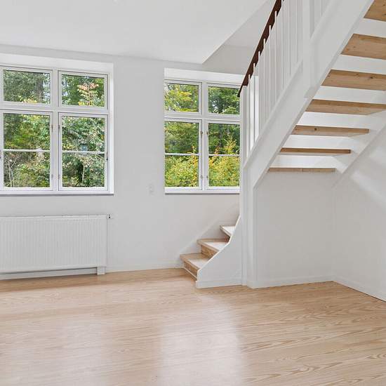 Nyrenoveret 2-plans lejligheden i Dr. Sells Park Nyrenoveret lejlighed i første række til Fredskoven Flyt ind i denne fuldstændig nyrenoverede lejebolig - og vær den første der bor i lejligheden efter totalrenoveringen. Lejligheden fremstår total nyrenoveret med lyse og funktionelle rum og moderne planløsning i to plan. Lejligheden indeholder i stueplan spisestue/køkken/alrum i åben løsning med nyt elementkøkken inkl. hvidevarer; opvaskemaskine, indbygningsovn, kogeplade, køle/fryseskab og emhætte med centralsug. Badeværelse fremstår med k...