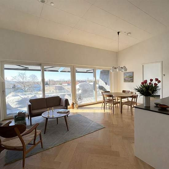 På en yderst central adresse tilbydes denne sjældent udbudte lejebolig, der kombinerer bylivets be­kvem­me­lig­he­der med en luksus og rumfornemmelse, man sjældent ser i et moderne lej­lig­heds­kom­pleks. Boligen er på 131 BBR-kvm. og er indrettet med hele 3 gode soveværelser, 2 badeværelser, bryggers samt et imponerende køkken-alrum og opholdsrum på 43 m². Planløsningen er gennemtænkt og balancerer privatliv og fællesarealer på fornem vis – ideel til både par, børnefamilien eller dem, der ønsker hjemmekontor i særklasse. Noget helt særligt ...