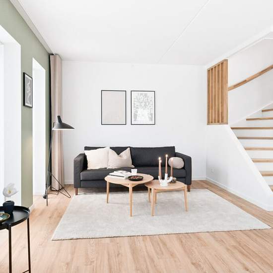 Rækkehusene er indrettet, således stueplan bliver det skønne samlingspunkt. Fra rækkehusets entré folder spise- og opholdsstuen sig formsikkert og lyst ud, og herfra er der åben forbindelse til køkkenet, som netop giver et samlingspunkt for familie og venner. Fra stuen er der udsigt til den private terrasse på havesiden, hvor grøn afskærmning til naboen skaber grønne, milde rammer for udearealerne. På forsiden af boligen er der ligeledes terrasseareal mellem carport og facade. Rækkehusene er indrettet med gulvvarme, og køkken såvel som bad...