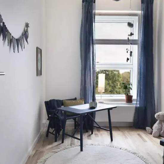 Lejligheden Lejligheden fremstår lys og rummelig med åbent køkken, spiseplads og opholdsstue. Kvaliteten er i højsædet med matlakeret gulv i ask, hvidt køkken fra Invita, der er udstyret med det nyeste inden for hårde hvidevarer - alle fra Bosch Siemens i energiklasse A+. Badeværelset er stort nok til at rumme den travle familie og har indbygget gulvvarme til de køligere dage. På badeværelset finder du også en integreret energivenlig vaskesøjle fra Bosch Siemens. OBS: ønskes der mål af lejligheden skal du selv huske opmålings udstyr til frem...