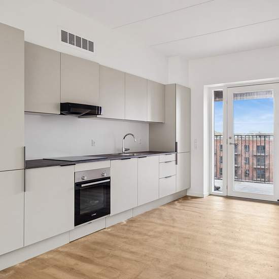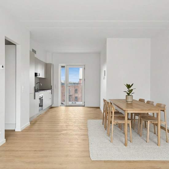Denne rummelige 4-værelses lejlighed på 116 m² brutto kombinerer moderne indretning, masser af plads og en attraktiv beliggenhed i Stigsborg – Nørresundbys nye, eftertragtede bydel tæt på fjorden, grønne områder og Aalborg centrum. Boligen rummer et stort opholdsrum med åbent Invita-køkken og integrerede hvidevarer, tre regulære værelser samt et rummeligt badeværelse med vaskesøjle. Overalt er der gulvvarme og trægulve fra Moland, som fuldender det moderne og stilrene udtryk. Fra opholdsrummet er der direkte udgang til en sydvendt altan, ...