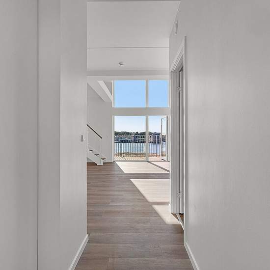 Velkommen til en luksuriøs lejlighed i Stigsborg – et moderne boligområde, hvor design og natur går hånd i hånd. Boligen Denne skønne 4-værelses penthouse lejlighed på 136 m² strækker sig over to plan og byder på en god entré med fast skab. Leverummet imponerer med store vinduespartier, der giver et fantastisk lysindfald, samt et eksklusivt HTH køkken udstyret med alle hårde hvidevarer og Quooker. Her er der plads til både spiseplads og stue, og fra leverummet er der adgang til en stor altan, soveværelse med faste skabe og et lækkert badevæ...