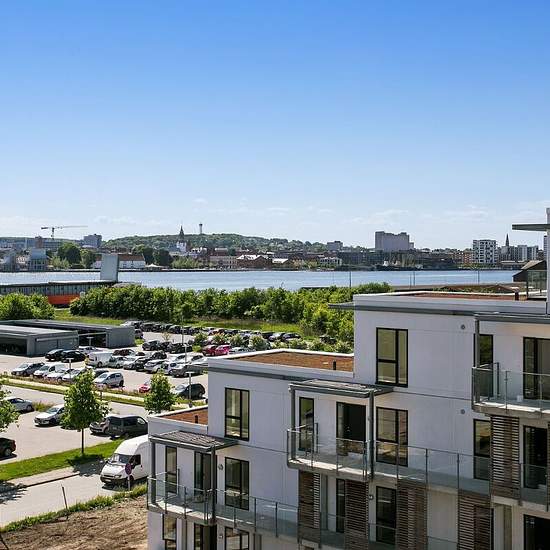 Ved det nye Stigsborg Havnefront finder du denne skønne lejlighed fra 2018 med udsigt over fjorden og Aalborgs skyline, boligen er lys og indbydende med flotte trægulve og gulvvarme, hvide vægge og eksklusivt køkken og bad, garderobeskab med skydelåger fra gulv til loft - her er der kræset for alle detaljer. Lejligheden består af en entré, køkken, stue/alrum, badeværelse, 1 soveværelse og 2 gode værelser. Derudover har lejligheden et fantastisk lysindfald fra de store vinduespartier så du kan nyde dine opholdsrum i masser af dagslys. Boligen...