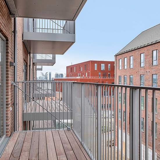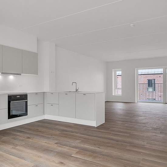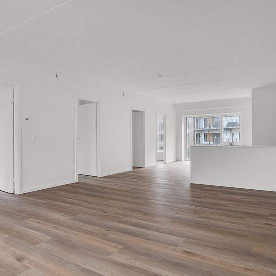 Velkommen til denne 4-værelses lejlighed hvor moderne design møder naturens ro. En indflytningsklar bolig med en behagelig atmosfære. Lejligheden byder på en indbydende entré, der giver adgang til et rummeligt leverum, hvor der er plads til både stue og spiseplads. Det eksklusive HTH-køkken er udstyret med alle nødvendige hårde hvidevarer og åbner op til en skøn altan, hvorfra du kan nyde udsigten til fjorden. De tre værelser er let tilgængelige fra leverummet, og badeværelset er praktisk indrettet med faste skabe samt vaskemaskine og tørre...