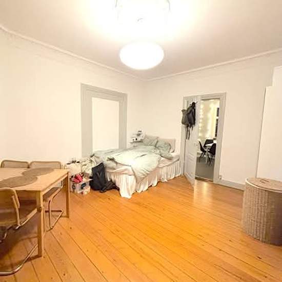 Stue lejlighed på Jagtvej tæt ved Munke Mose og City. Ejendommen har 4 lejligheder, de 3 som denne med 4 værelser. Lejligheden er med 3 stuer/værelser ud imod Jagtvej, det ene værelse lidt mindre end de andre. Dertil en stue/spisestue mod gården, køkken og badeværelse. Bemærk billederne er fra tilsvarende lejemål i ejendommen. Plads til egen opvaskemaskine, vaskeri i kælderen, cykelparkering etc i gården. Overtagelse 1/1-2026 eller efter aftale Leje 10.600/md Vand med i lejen Varme 900 A/C