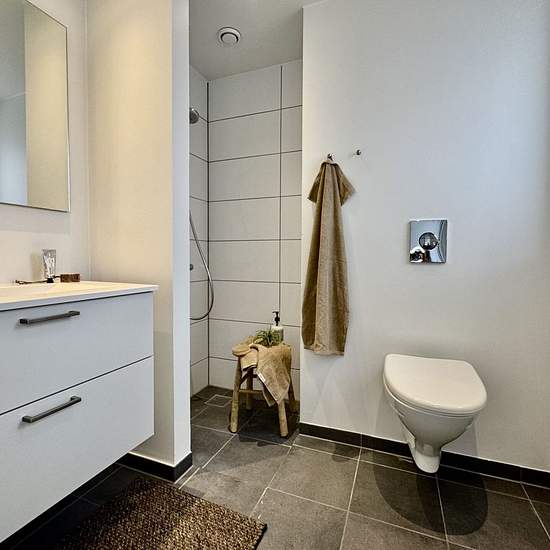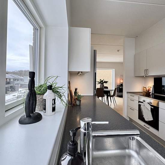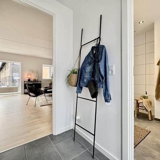 Velkommen til Kranvejen, hvor du finder denne skønne lejlighed på 1. sal i to plan. Boligen rummer hele 116 m² og byder på masser af lys, god plads og en rigtig funktionel planløsning. 1. sal (stueplan): Lejlighedens stueplan ligger på 1. sal og indeholder en stor, indbydende stue med en smuk vinkeltrappe til overetagen. Her er der rig mulighed for både sofa- og spiseafdeling. Det rummelige køkken har god bord- og skabsplads samt mulighed for installation af egen opvaskemaskine. Derudover findes en praktisk entré og et lyst, flot badeværel...