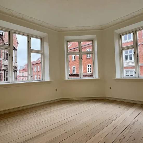 Centralt beliggende og renoveret hjørneejendom, tæt på banegården, offentligt parkanlæg og med byens centrum i gåafstand med et stort udvalg af indkøbsmuligheder. Der er fælles gårdhave til ejendommen. Børneinstitutioner og skoler i gåafstand. Vaskefaciliteter henvises. Afhøvlede massive trægulve og stuklofter.
