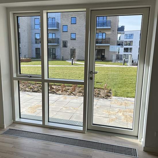 4 værelses – med egen vestvendt terrasse Regulær og ny 4 værelses lejlighed, som bl.a. indeholder lækkert badeværelse med bruseniche og vaskesøjle, flot køkken i åben forbindelse med stue/opholdsrum samt 3 gode og regulære værelser. Fra stuen er der udgang til en dejlig terrasse – som ligger i forlængelse af gårdhaven. – Alt i hvidevarer – Gode kvalitetsmaterialer overalt – Husdyr er tilladt – Stor gårdhave – Elevator – Gratis P-pladser under tag (der er ladestander) Lejligheden er beliggende i et nyt boligområde i Risskov – tæt på strand...