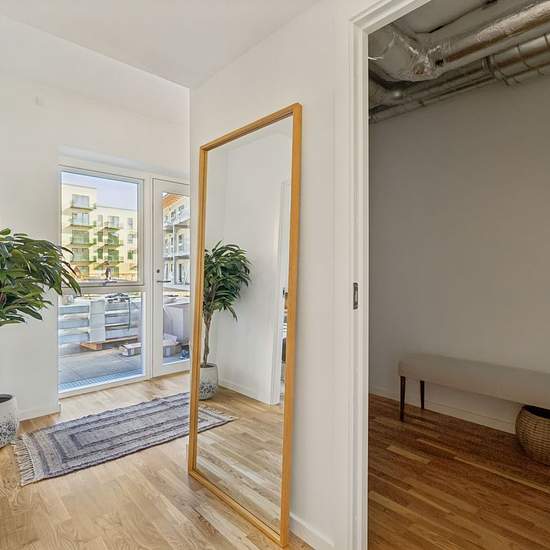 Om lejlighederne: Alle lejligheder er udstyret med altan eller terrasse og boligerne er indrettet i smagfulde materialer. Generelt er der lagt vægt på rummelige leverum indrettet med Invitakøkkener i moderne og stilrene designs, egetræsgulve og flot lysindfald fra de store vinduespartier. I alle lejligheder, er der etableret gulvvarme, herunder også i badeværelset, som er udstyret med energivenlig vaskemaskine og tørretumbler. I lejlighederne er der lagt vægt på gode opbevaringsløsninger i form af skabe og alle lejligheder har adgang til pri...