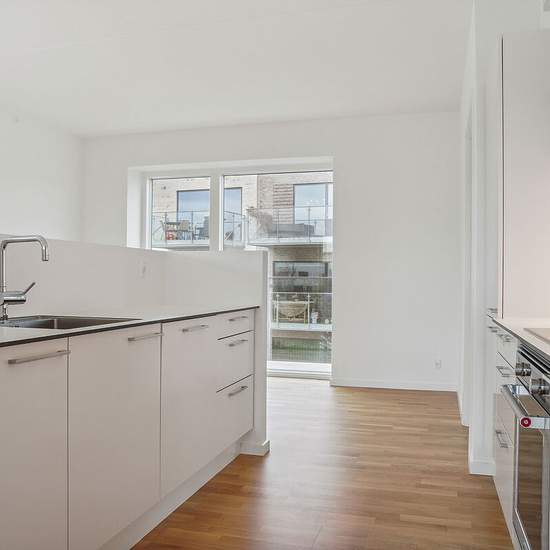 Nydelig lejlighed i Nordens Søpark I Nordens Søpark i Trekroner ligger disse smukke og nyere ejendomme som byder på flere unikke lejligheder i forskellige størrelser og med en nogenlunde ensartet indretning. Ejendommene præsenterer sig med murstensfacade i changerende nuancer, der prydes af mørke vinduesrammer og døre, som skaber et stilrent udtryk. Ønsker du at møde dine naboer, er socialt samvær oplagt i de anlagte grønne omgivelser, som er til fri afbenyttelse. Her er der plantet træer, arrangeret med cykelstativer og lavet boldbaner og...