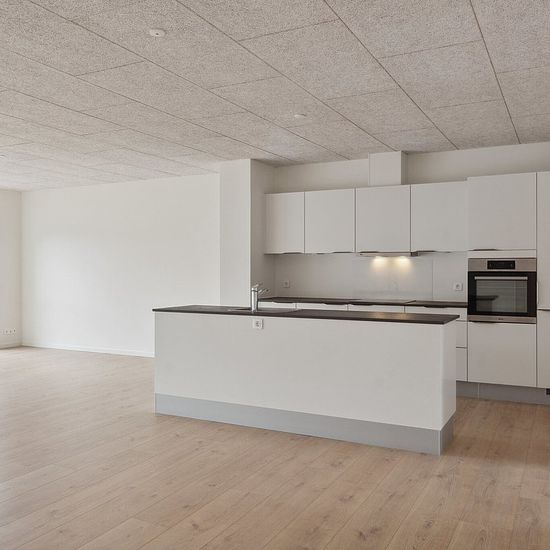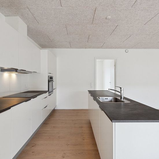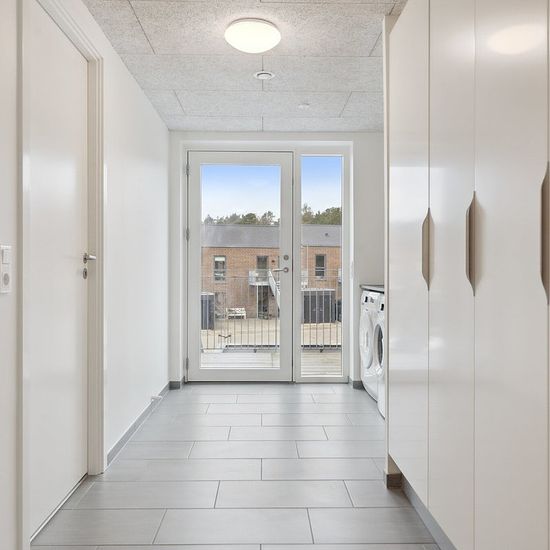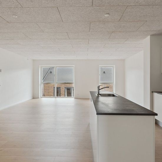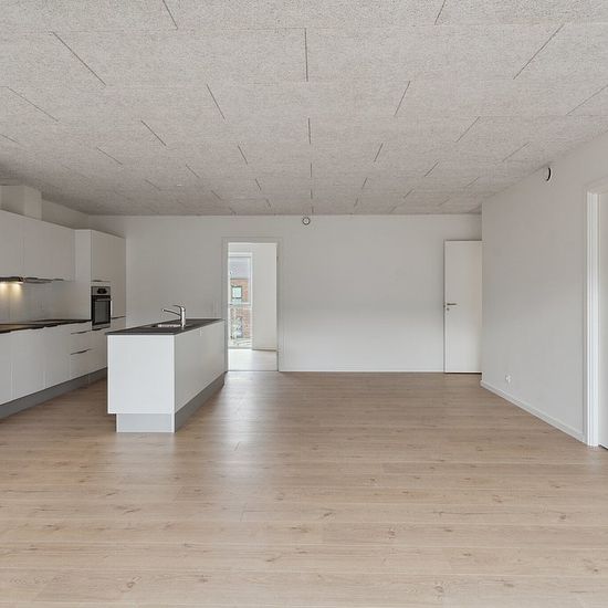 113 m² moderne lejlighed på 1. sal 3 værelser – alle med faste skabe Praktisk bryggers i entré med vaskemaskine og tørretumbler Stort og lyst køkken-alrum i åben forbindelse med stue Stilrent og rummeligt badeværelse Akustiklofter (Troldtekt) i hele lejligheden for behageligt lydmiljø Varmegenvindingsanlæg for et sundt og energieffektivt indeklima Roligt boligområde tæt på natur, skov og sø Kort afstand til skole, daginstitution og REMA 1000 Gode tilkørselsforhold til motorvej – ideelt for pendleren Fællesfaciliteter som legeplads ...