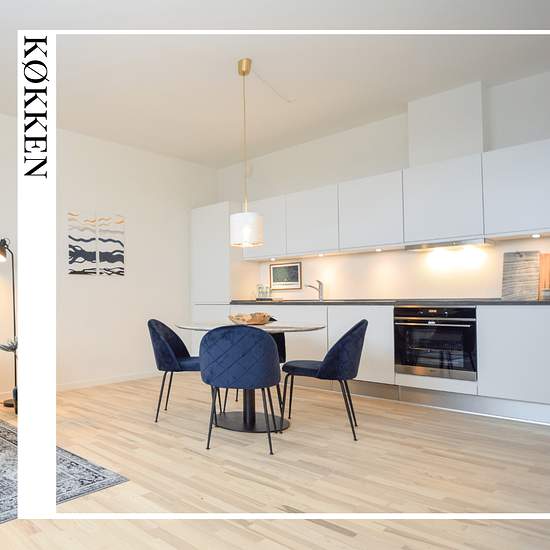 118 kvm | 4 værelser | Overtagelse: 1/6-26 Her får du en moderne lejlighed, der for nylig er opført i lyse kvalitetsmaterialer og har masser af vinduer, som sikrer et skønt lysindfald i boligen. Boligen indeholder en rummelig entré med god plads til overtøjet. Fra entreen er der indgang til et dejligt værelse med indbygningsskabe samt et stort badeværelse med plads til opsætning af vaskemaskine og tørretumbler. Entréen ender ud i en stor lys stue med åbent køkken. Køkkenet er et tidsløst, grebsfrit køkken – indeholdende alle hårde hvidevare...