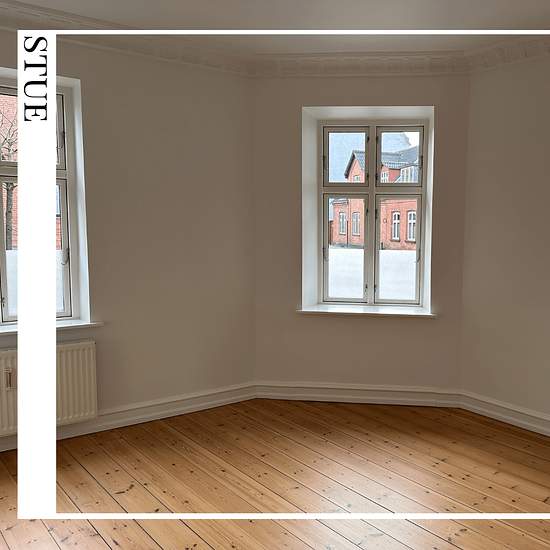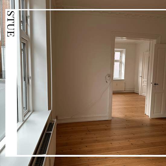 115 kvm | 4 værelser | overtagelse: 1/6-26 Denne lejlighed ligger dejlig centralt og har mange gode kvadratmeter. Fra den lange fordelingsgang er der adgang til alle rum. Boligen rummer et stort flisebadeværelse med bruser og plads til vaskemaskine, et hvidt køkken mod gården og alt i hårde hvidevarer, et stort værelse – også mod gården – samt tre stuer ensuite, hvoraf den ene kan inddrages til ekstra værelse. Hele lejligheden er lys og har højt til loftet. Der er trægulve i både værelser og stuer. Lejligheden er velegnet til par, familien...