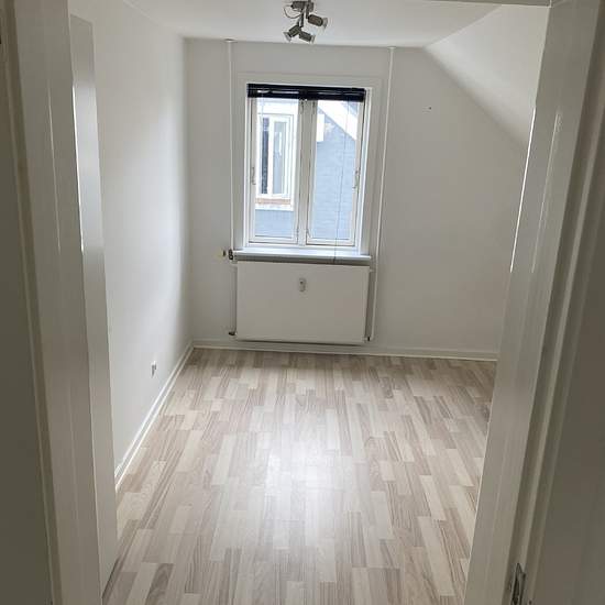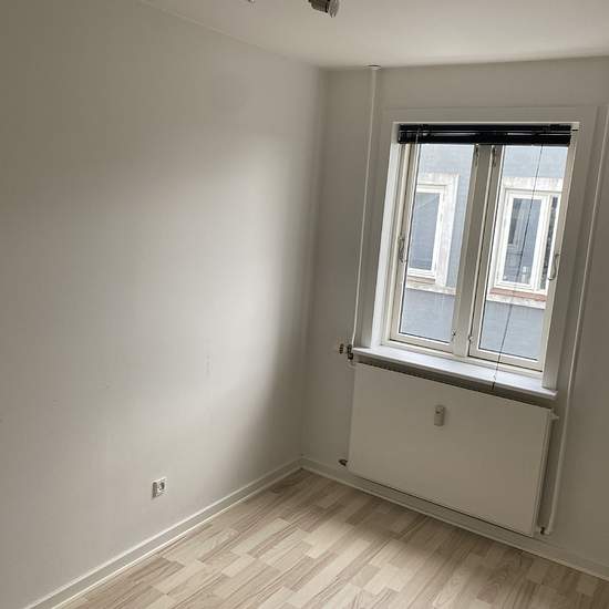 Stor og nydelig 4 værl. lejlighed på 125 kvm som indeholder: Egen opgang og entre til lejemålet, stor lys stue med udgang til overdækket balkon, 2 dejlige værelser og et mindre kammer, dejligt køkken og flisebadeværelse.