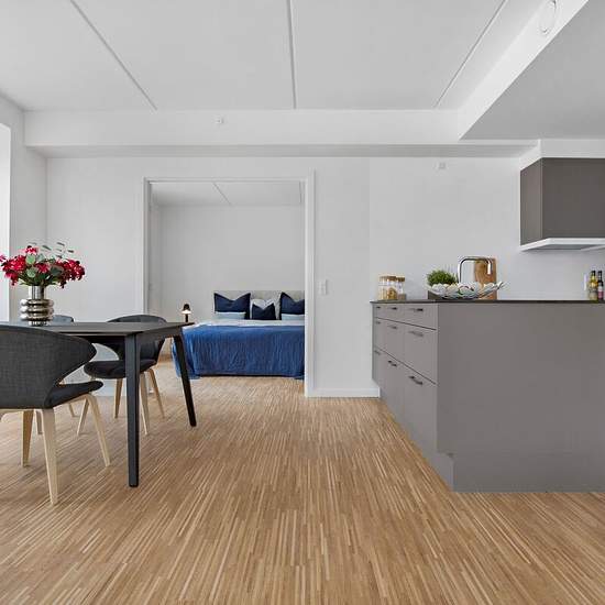 På Oase Husene er der boliger for alle, hvad enten du er single, en familie eller har behov for en seniorvenlig bolig. De velindrettede 2-, 3- og 4- værelses boliger har alle optimale planløsninger og stort set alle har adgang til terrasse eller altan. Boligerne har et lækkert og tidløst køkken fra HTH udstyret med alt i hårde hvidevarer. Køkkenet er i åben forbindelse med boligens opholdsareal, og der er gennemgående gulve i egetræ. Badeværelserne med tidløse klinker er rummelige og udstyret med vaskemaskine. I kælderen under boligerne er d...