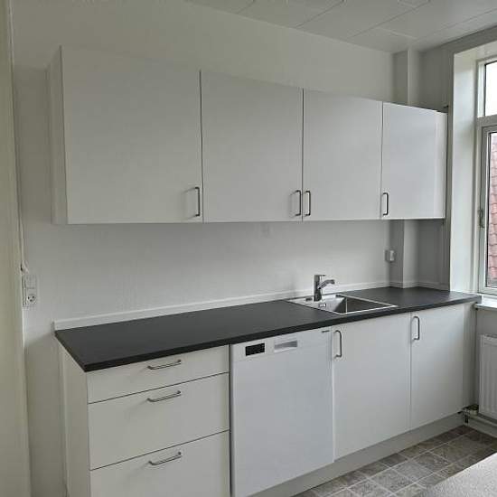 Dejlig lejlighed i centrum af Thisted med smuk udsigt over havnen og fjorden. Lejligheden er beliggende dejligt centralt og alligevel i rolige omgivelser ved gågaden. Lejligheden indeholder entré med fordelingsgang - pænt nyt køkken - godt badeværelse med mulighed for vaskesøjle - stort soveværelse og garderoberum - værelse - spisestue med sildeparket - opholdsstue. Lejligheden er nyrenoveret og i orden. Depotrum i kælderen. Mulighed for leje af garage 100 m væk.