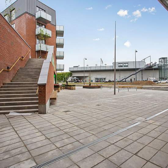 Lejlighederne er usædvanligt højloftede og med store vinduespartier, der gør, at lyset strømmer ind fra alle vinkler, det får boligerne til at fremstå lyse og venlige. I køkkenet er der støjsvage hårde hvidevarer med fuldt integrerede fronter, på badeværelset er der vaskesøjle og stor bruseniche. Alle lejligheder har garderobeskabe og depotrum. Til de fleste lejligheder er der altan eller terrasse. Byggeriet er i lavenergiklasse og har fået tildelt det grønne energimærke A 2015. I ejendommen findes der en dagligvarebutik samt café. Derudov...