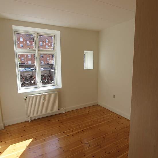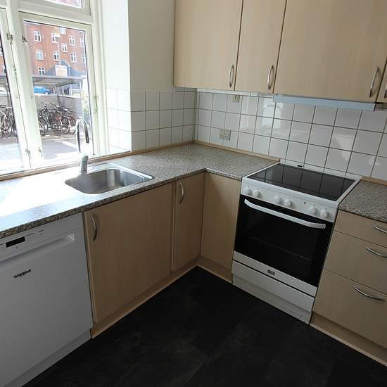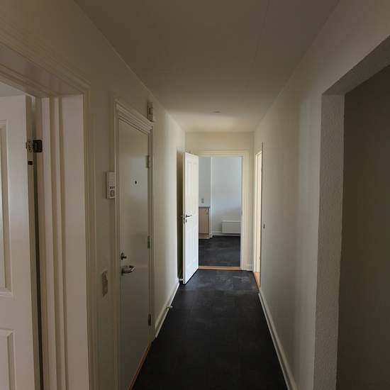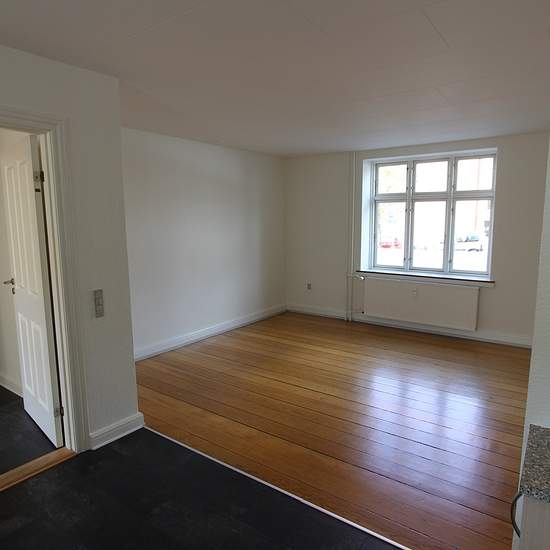 Stor 4 værelses i centrum med parkering Lejligheden fremstår lys og flot renoveret med lakerede plankegulve i stue og soveværelse. Lyst køkken med bøg køkkeninventar samt lille spiseplads. Badeværelse er med hvide fliser på vægge og grå fliser på gulv samt glasskillevæg til bruserum. Husdyr ikke tilladt. Ejendommen, som er opført i 1920 og løbende moderniseret, er beliggende i Vejle Vestby nær centrum. Ejendommen er en del af en boligkarré bestående af 143 lejligheder. I kælderen er der fælles vaskeri, tørrerum og cykelrum. Til hver lejligh...