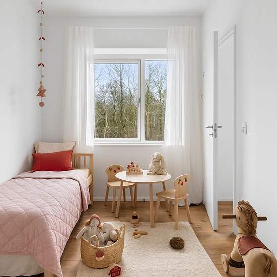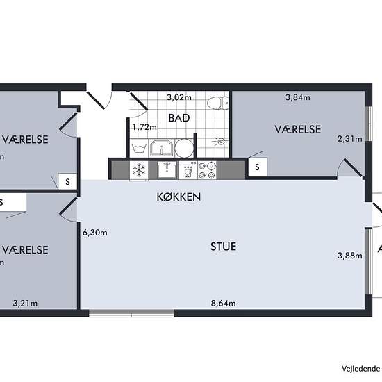Denne moderne 4-værelses lejlighed fra 2022 ligger på Rensdyrvej i Nørremarken – et roligt område med naturen som nabo og kun få minutter til Vejle centrum. Lejligheden byder på et lyst og åbent køkken-alrum med plads til både spisebord og sofaafdeling. Herfra er der udgang til en sydvendt altan, hvor du kan nyde solen det meste af dagen og den frie udsigt til de grønne omgivelser foran ejendommen. Boligen rummer et soveværelse med garderobeskab, to ekstra værelser, en funktionel entré med opbevaringsplads samt et moderne badeværelse med b...