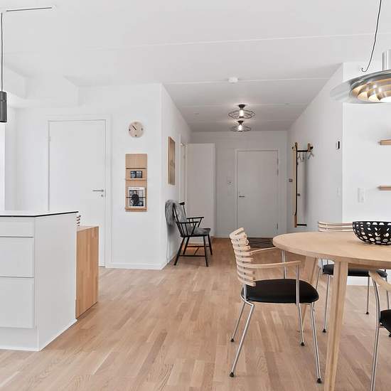 Nyd Klippingshusenes moderne komfort og gennemførte design Klippingshusene består af i alt 9 blokke med 144 lejligheder i alt. Lejlighederne ligger i stuen, på 1. sal eller 2. sal, og har altaner eller en flisebelagt terrasse. Indvendigt findes forskellige planløsninger, fra 69-100 m2, og du kan vælge en lejelejlighed med 2, 3 eller 4 værelser. I Klippingshusene kan du flytte direkte ind i en nybygget lejebolig med lyse kvalitetsmaterialer og en stilren designlinje, der gør det let at indrette og skabe sin egen stil. Det er moderne lejlighe...