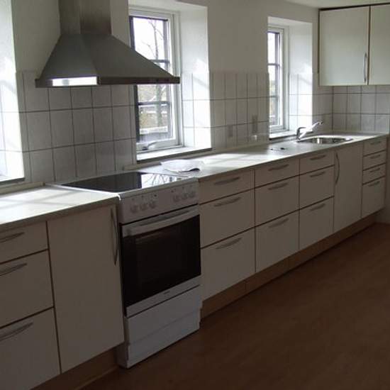 Stor og lys 1. sals lejlighed med åben køkken/stue, 3 værelser, stor entre, lækkert badeværelse. Ligger i en gammel ombygget gård med 6 lejligheder i alt. Opvarmes med naturgas( målere på radiatorer).