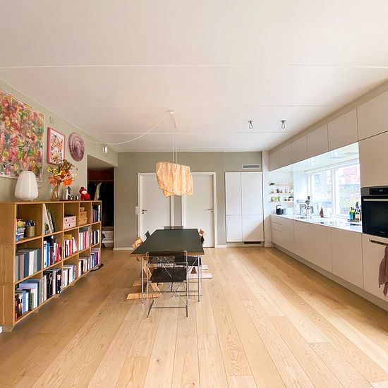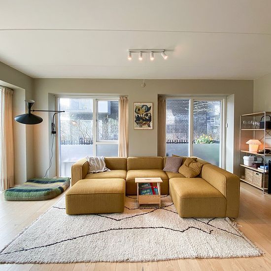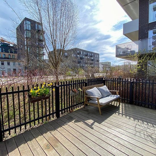 Skøn og rummelig stuelejlighed på hele 122 m², perfekt disponeret uden spildplads og med 3 soveværelser. Her får I en bolig, der næsten føles som en villa – med terrasser hele vejen rundt, så solen kan nydes fra morgen til aften. Lejligheden udlejes fra 1/8-26 i 3–5 år. Lejligheden indeholder: Indbydende entré med plads til overtøj, som leder videre til et stort og lyst køkken-alrum i åben forbindelse med stuen og med direkte udgang til terrassen. Soveværelse med indbyggede skabe samt 2 gode børneværelser – det ene med indbygget seng/rutsje...