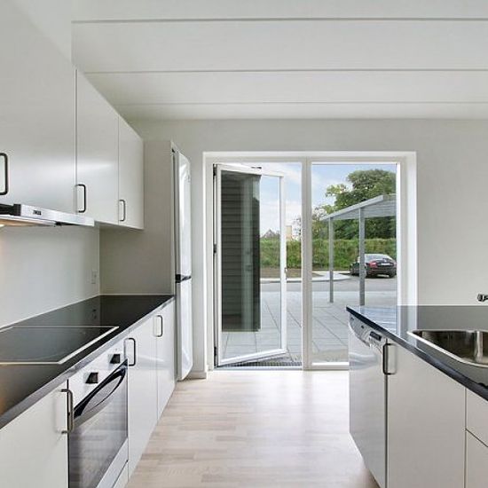 Lækkert 2 plans rækkehus fra 2017 tæt på naturen. 5 værelser 4 soverum , lækkert hvidt Hth køkken med sort granitbordplade , køleskab ,fryser , opvaskemaskine, flotte lyse trægulve med gulvarme i alle beboelses rum, genveks ( billig varme) 2 badeværelser et på hver etage med plads til vaskesøjle på det i stue plan. fin flisebelagt terasse i egen lille have med udsigt over marker , der ver vognly samt meget rummeligt depotrum, store fællesarealer , 300 meter til letbanen 100 meter til busstoppested, 5 km til Ajstrup strand og Nordsminde lys...