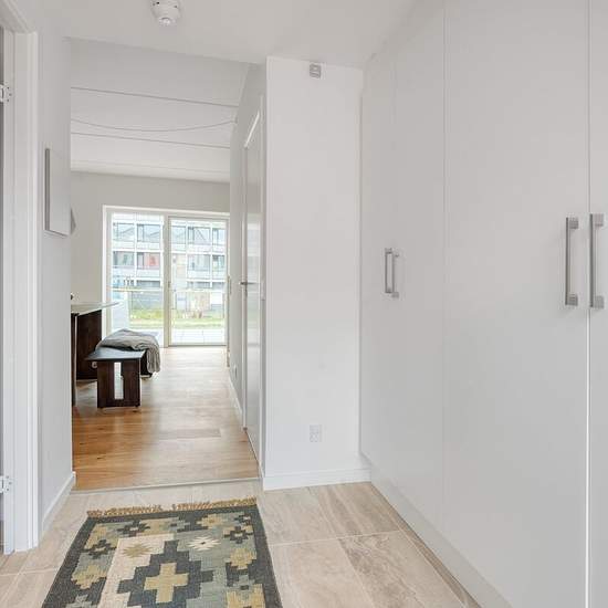 PRAKTISK INFORMATION: HUSDYR:Der tillades pr. bolig max. 1 stk. husdyr på max. 15 kg. ACONTO:Angivet husleje er ekskl. forbrug.Der betales ikke aconto-beløb (vand/varme/el) til udlejer, men betales direkte til forsyningsselskaber PARKERING:Der anlægges 75 gratis p-pladser i byggeriet forbeholdt beboerne, hvoraf 8 boliger har privat p-plads foran egen hoveddør. INDFLYTNINGSPRIS: Indflytningsprisen er 5 måneders husleje, bestående af 1. måneds husleje, 1 måneds forudbetalt leje og 3 måneders depositum Trekanten er et nyt, blomstrende kvarter...
